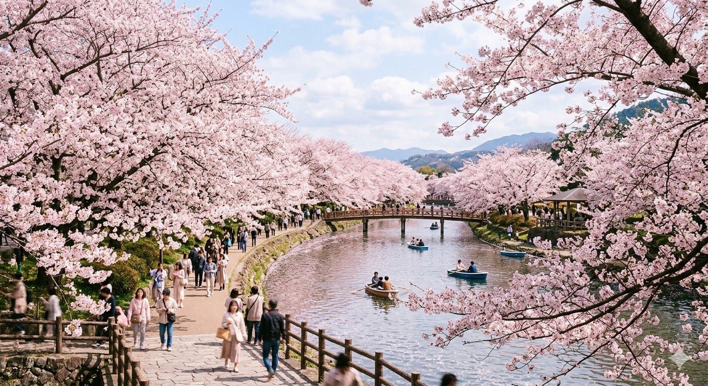 桜が開花した花見会場の写真です。