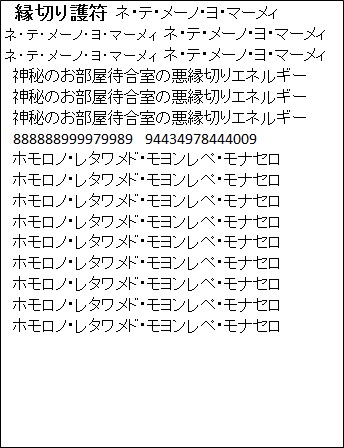 縁切り護符です。切りたい縁・遠ざけたい事を書いてください。